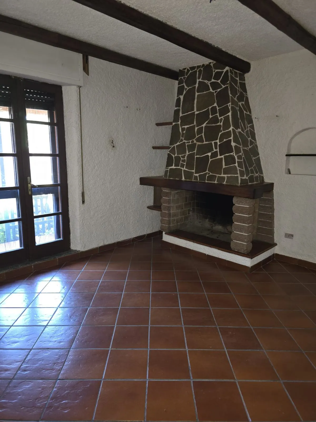 L'ingresso principale si apre su una zona giorno spaziosa e luminosa. Il vero protagonista del salone è il grande camino, perfetto per creare un'atmosfera calda e accogliente durante i mesi invernali.